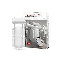 When it comes to curtains, you can get fully motorised curtain rail tracks or there’s a growing range of devices you can retrofit to existing curtains such as the Switchbot below.