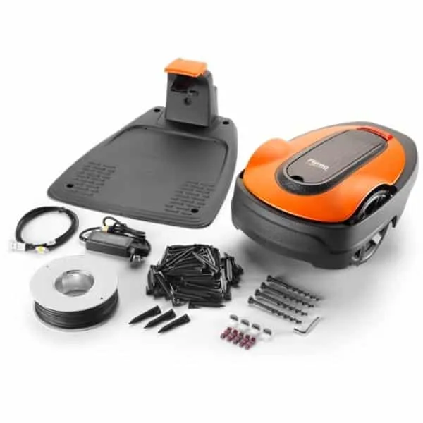 The mower uses a combination of onboard collision sensors, a perimeter wire, and guide wire to navigate your lawn. There aren’t yet any robot mowers without a perimeter wire so this is very common.