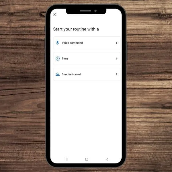 The ‘starter’ is the trigger that causes the routine to begin. By default, you will have to set a voice command for all routines, but you can also set it to automatically trigger based on: