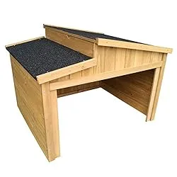 It has a two-layer slopped roof that lifts up to give you access inside for reaching the transformer or mains supply. There is no door on the front, although some users have retrofitted an automatic door for that extra special touch.