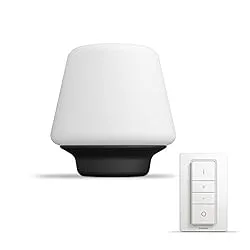 The light has 1100 Lumen (75W equivalent) but can be dimmed as low as 100 lumen making it suitable for a variety of uses. Unlike other smart table lamps here, it is a white light only with no colour changing bulbs.